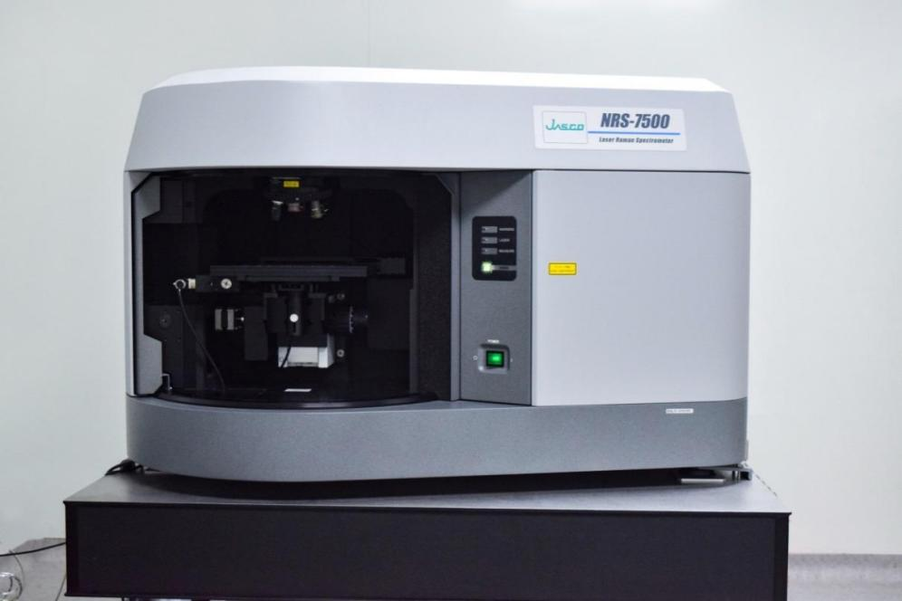 仪器型号为JASCO NRS-7500,仪器具有高度整体性和稳定性,完全自动化操作。装配300,600,1800,2400gr/mm 4个光栅,配备355nm、457nm、532nm、633nm、785nm激光器,适用于各种材料的测定。CCD检测器检测范围200-1050nm。光谱分辨率≤0.8cm-1,光斑尺寸≤1μm。可做线扫、面扫(测试样品需双面平行)。