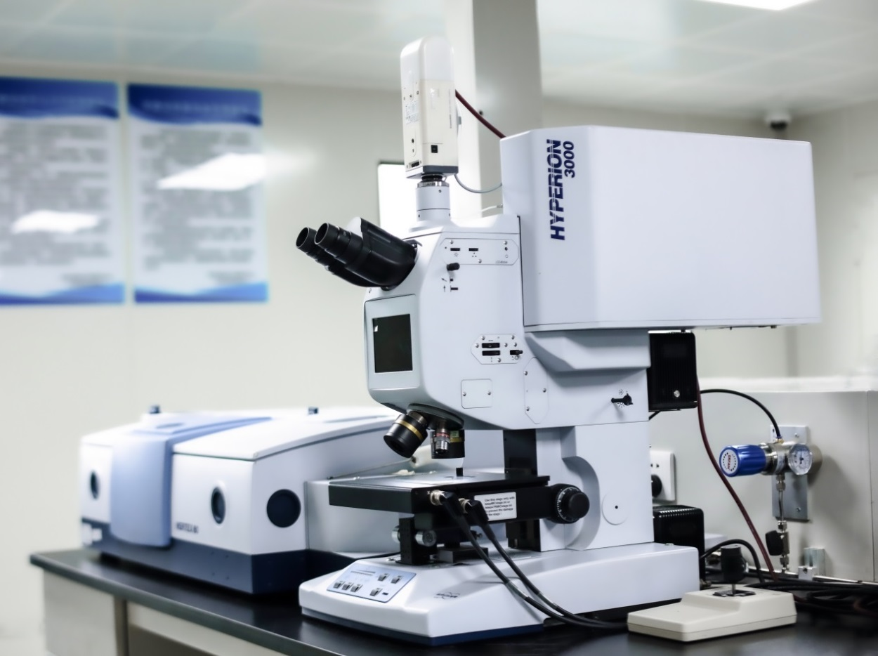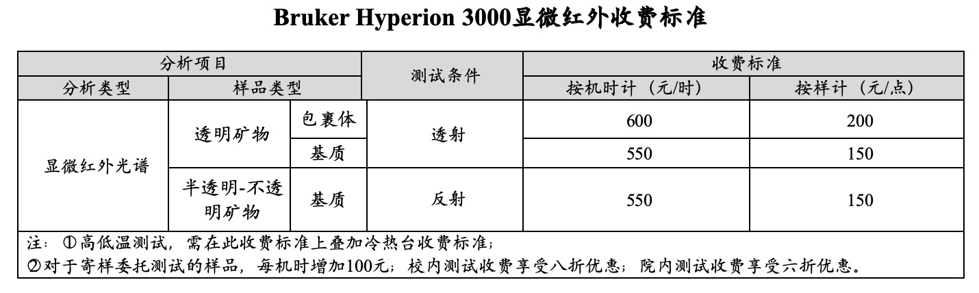 Bruker Hyperion 3000(实际为2000),探测器为LN-MCT-D316-025。灵敏度高,测量区域250微米,工作距离24mm,测试范围7000-600cm-1。可对样品进行大区域面扫、线扫。可进行透射、反射测试。