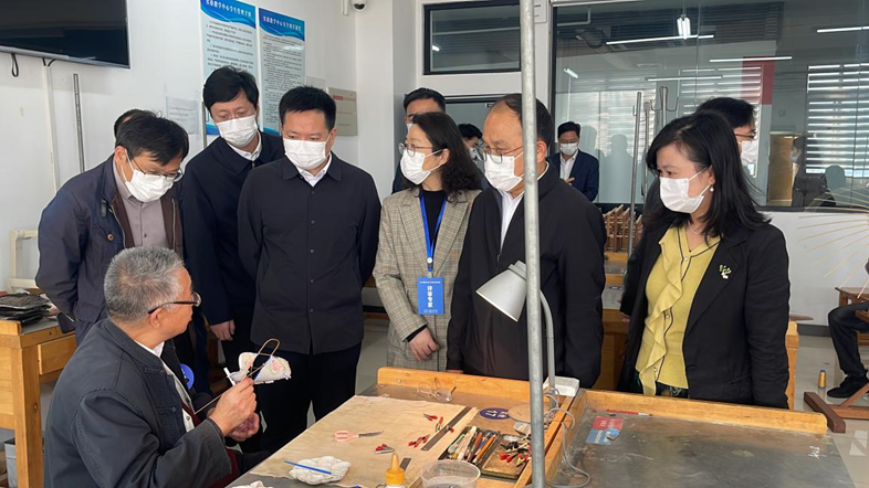 评审期间,湖北省经济和信息化厅一级巡视员周开斌带队来校,实地巡查各工艺类别实操考场,了解选手创作情况,并与我校副校长胡守庚、偷拍外流 领导及评审专家交流。