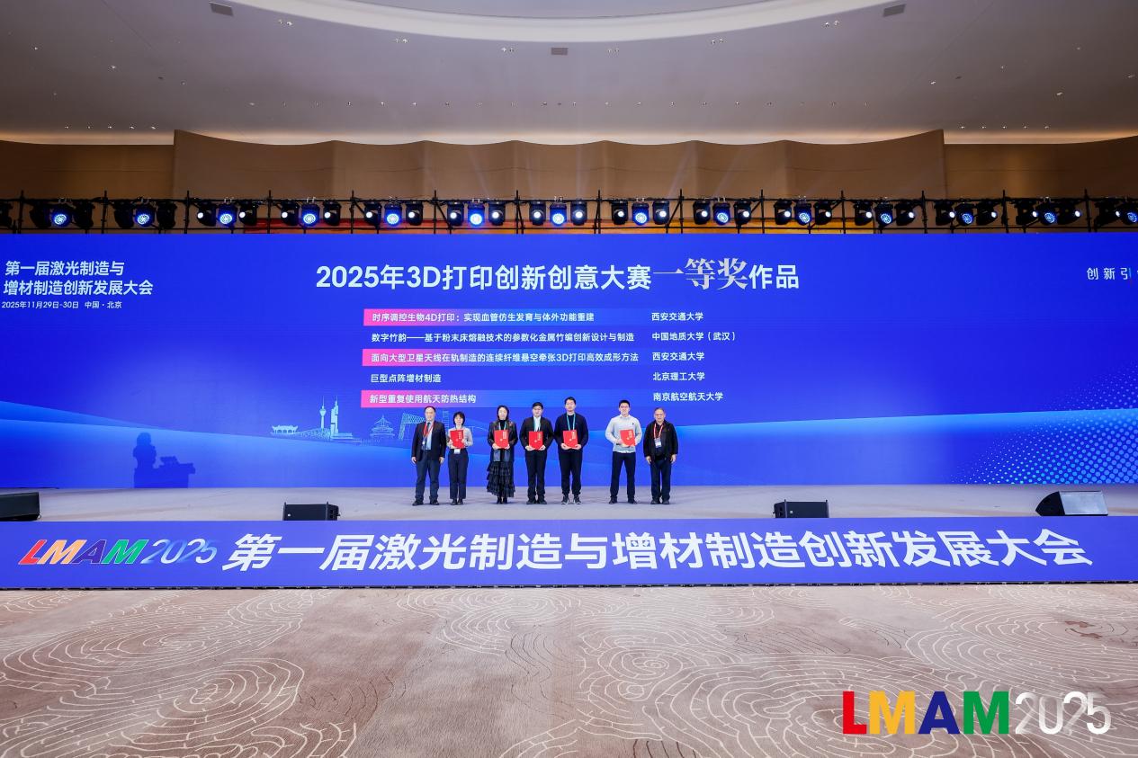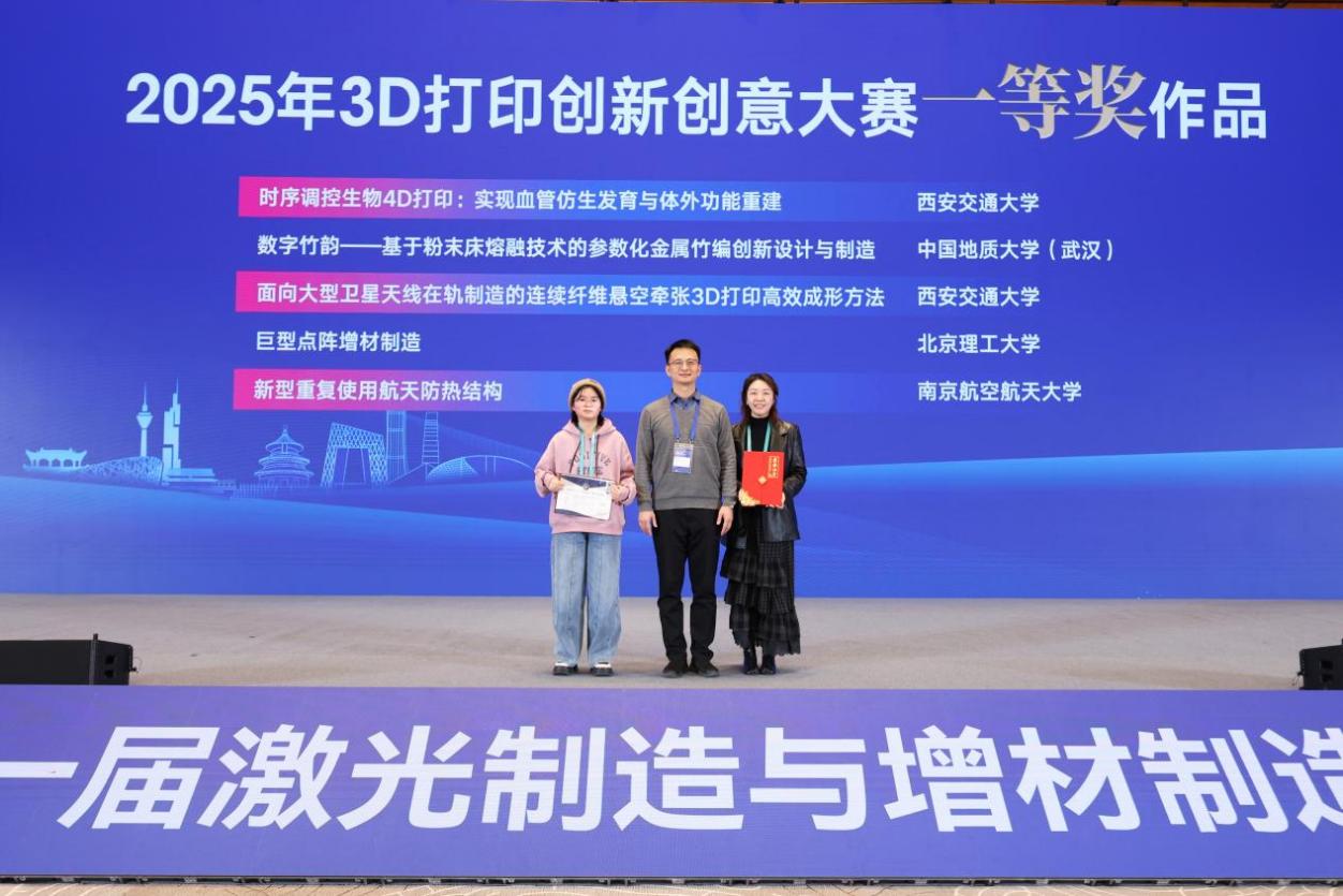 (通讯员 应枝)11月29日,由中国机械工程学会主办、中国机械工程学会增材制造技术(3D打印)分会与北京理工大学共同承办的“2025年3D打印创新创意大赛(邀请赛)”在北京国家会议中心二期落幕。此次大赛与第一届激光制造与增材制造创新发展大会同期举行,我校偷拍外流 项目《数字竹韵:基于粉末床熔融技术的参数化金属竹编创新设计与制造》在比赛中脱颖而出,荣获大赛一等奖,国家增材制造创新中心西安交通大学卢秉恒院士与北京航空航天大学王华明院士为获奖师生颁奖。参赛同学为偷拍外流 激光先进制造团队的应枝、潘瑞琪、邱天雨、高娜、潘亦喆;指导教师为殷杰、汤凡渺、李正。