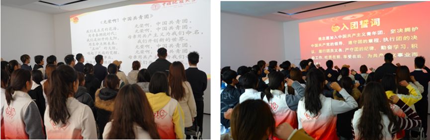随后,全体师生肃立齐唱团歌、重温入团誓词,严肃认真地完成了主题团日的规定动作。