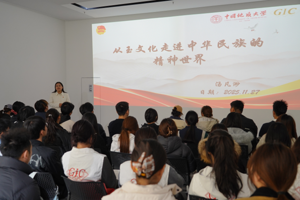 理论学习环节,汤凡渺老师以“玉文化”为切入点,带领大家探寻民族精神密码。她从玉石9000年传承史切入,详解“以玉比德、以玉载礼、以玉敬天”三大内涵,结合“中华第一玉凤”“玉琮”等古代玉器图片,系统梳理了孔子玉有“十一德”、许慎玉有“仁、义、智、勇、洁”五德等玉德学说的历史脉络,详细讲述了中国古人赋予玉石高尚品德内涵,塑造了中国古人崇德向善精神境界的历史故事。最后带领大家学习了二十届四中全会精神,“要激发全民族文化创新创造活力,繁荣发展社会主义文化。”“大力繁荣文化事业,加快发展文化产业,提升中华文明传播力影响力”。